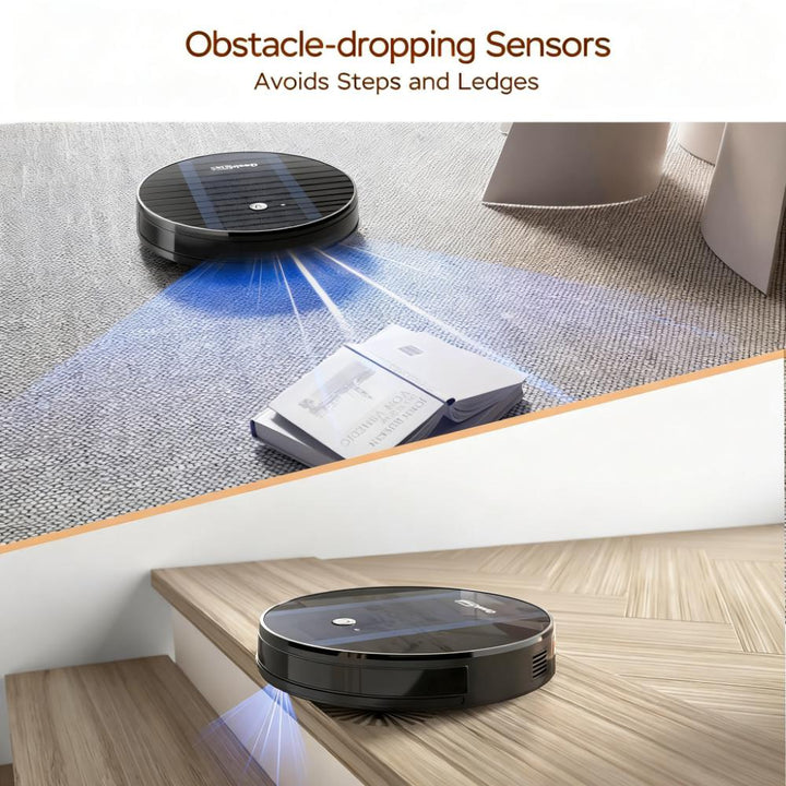 Safe & Thorough Cleaning: Equipped with sensitive anti-collision and drop-sensing sensors to prevent collisions with furniture and falling down stairs. The slim 2.85-inch height reaches under beds, sofas, and other hard-to-reach areas for comprehensive cleaning.
