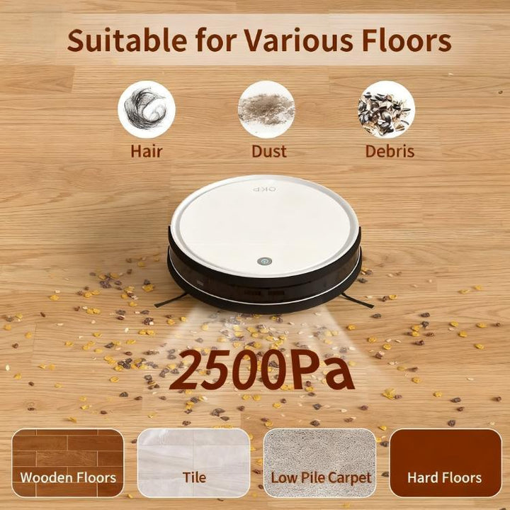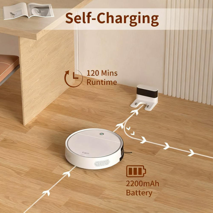 Smart Robot Vacuum Cleaner-2500Pa/120min/WiFi/Self-charging/Hard floors & Pets